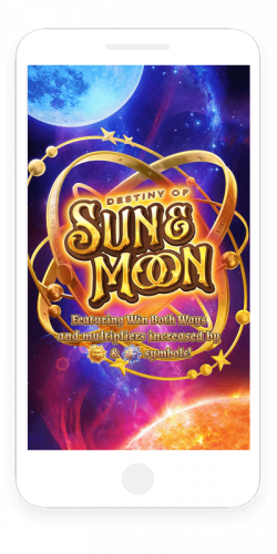 Destiny of Sun & Moon เป็นเกมสล็อตวิดีโอที่มีล้อ 6 ล้อ (2 แถวในล้อที่ 1 และ 6, 3 แถวในล้อที่ 2 และ 5, 4 แถวในล้อที่ 3 และ 4) ซึ่งมีรูปแบบชนะทั้งสองทางและตัวคูณชนะทั้งสองทาง คอมโบสีชนะสามารถเกิดขึ้นจากซ้ายไปขวาหรือจากขวาไปซ้าย ซึ่งทำให้คุณมีโอกาสชนะมากขึ้น! ในช่วงคุณสปินฟรี สัญลักษณ์ Sun หรือ Moon ทุกตัวจะเพิ่มตัวคูณชนะขึ้นอีก 2 เท่า!